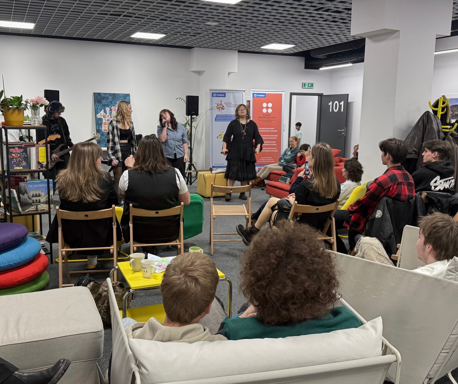 Zwieńczeniem dnia był koncert młodzieżowego zespołu VIBECASTERS, który wypełnił przestrzeń Centrum muzyką i energią młodych artystów. Nie zabrakło również symbolicznego momentu urodzinowego, wspólnego tortu przygotowanego przez przyjaciela Centrum, Alexa.